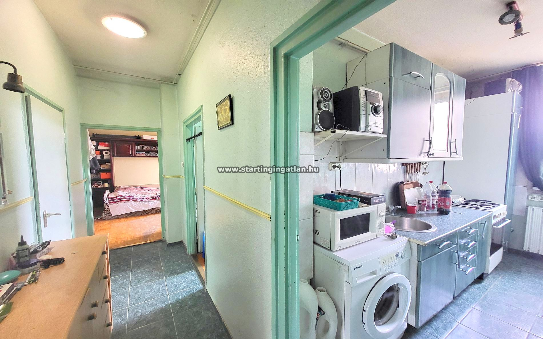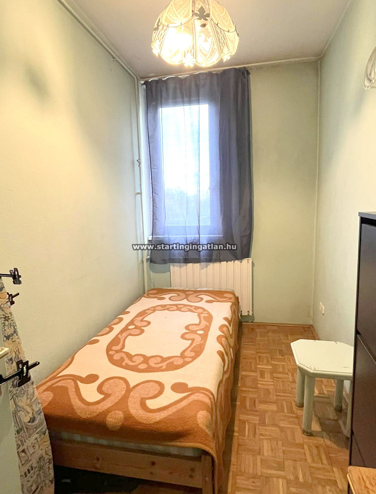 A lakás felújítandó állapotú, ami kiváló lehetőséget biztosít arra, hogy az új tulajdonos teljes mértékben a saját elképzelései szerint formálja. A legfelső emeleti elhelyezkedés külön előnyt jelent: nincs felső szomszéd, így nyugodtabb élettér biztosított. Az ablakok parkra néznek, a zöld környezet és a csendes hangulat pedig igazán kellemes otthoni légkört teremt. Az elosztás jól átgondolt: az előszobából minden helyiség külön nyílik. Jobbra az ablakos konyha található, vele szemben egy kamra, amely akár gardróbbá is alakítható. A közlekedőből balra a kádas fürdőszoba (WC-vel), szemben a kisebb szoba, míg a bejárattal szemben a világos, franciaerkélyes nappali helyezkedik el. A nyílászárók már cserélve lettek, minden egyéb felújítás az új tulajdonosra vár. A fenntartási költségek kedvezőek: a távfűtés havi 9.000 Ft, a közös költség 26.000 Ft, amely tartalmazza a korlátlan vízfogyasztást, a szemétszállítást, a ház takarítását, a felújítási alapot és a közös képviselet díját is.